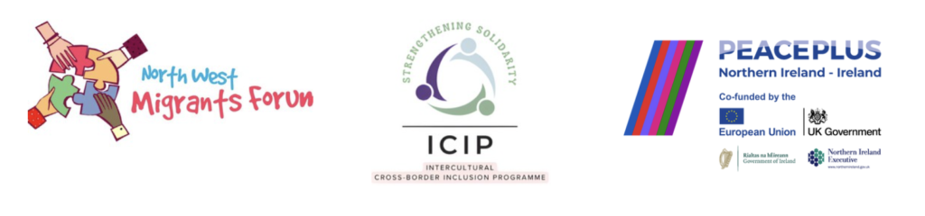 Funded by the PEACEPLUS Programme, ICIP is proudly led by the North West Migrants Forum (NWMF) in partnership with Donegal Intercultural Platform (DIP), the Irish Network Against Racism (INAR), Multi-Ethnic Sports and Cultures NI (MSCNI), and the Rural Community Network (RCN).